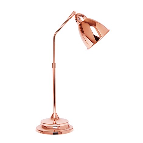 Med en riktigt snygg lampa på skrivbordet blir det en fröjd att jobba. Bra ljuskällor är även hälsosamt för ögonen. Den här i koppar heter Aston och kommer från Hemtex. 599 kronor.