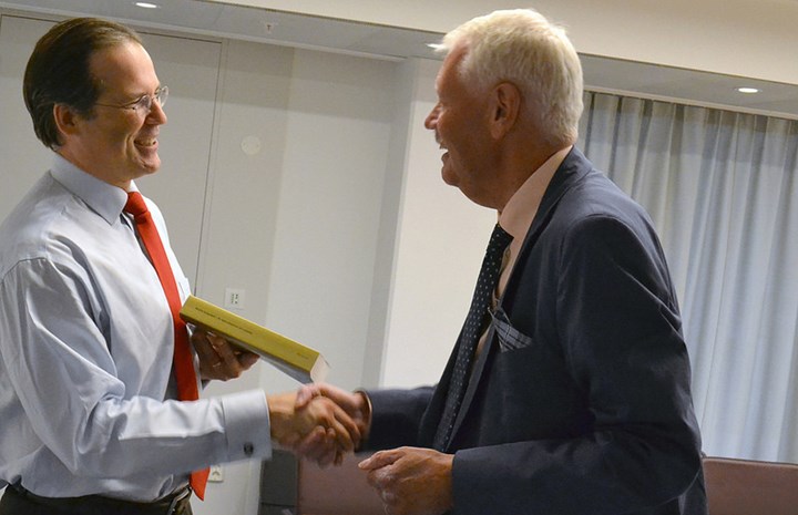 Foto: Anders Borg får förslaget från ordförande HG Wessberg.