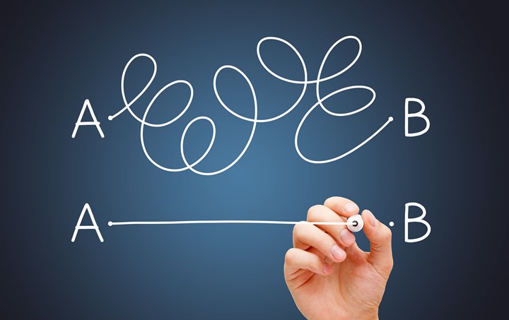 Foto: Hand drawing a conceptual diagram about the importance to find the shortest way to go from point A to point B, or a simple solution to a problem.