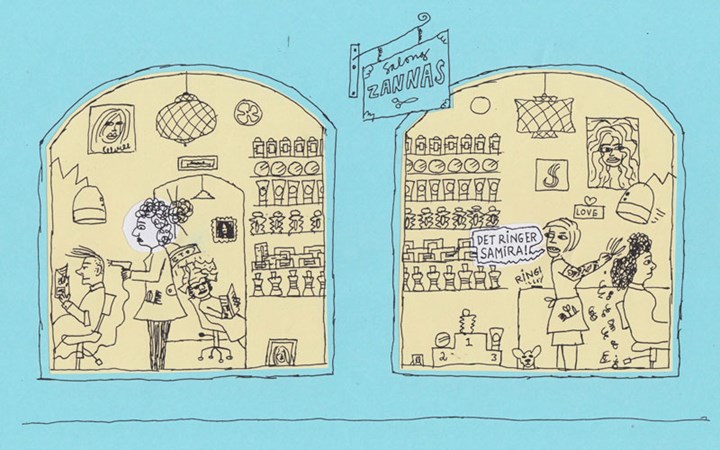 Foto: Samira vill få tips på hur hon ska hantera orättvisorna i den salong där hon hyr en stol. Illustrationer Göran Uggla