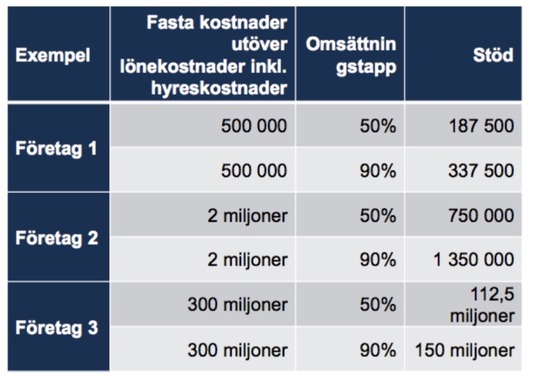 – Omställningsstödet gäller för 22,5 - 75 procent av företagets fasta kostnader under mars och april 2020.