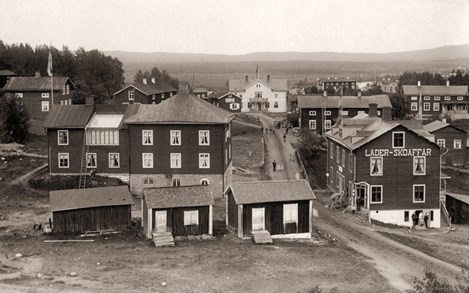 Hon bjuder på kaffe och vi sätter oss ner för att bläddra igenom gamla bilder och prata om företagets fascinerande historia. Margareta berättar hur hennes farfars far kom vandrande som gesäll från Göteborgstrakten upp genom landet och hur han stannade när han kom till Älvsbyn 1879.