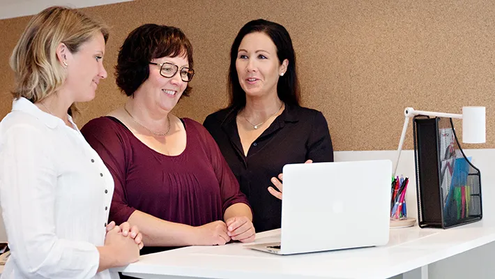 – Många har problem med rekrytering och det har vi till viss del också här på liten ort, men vi märkte verkligen en stor fördel när vi skulle rekrytera en lönekonsult – vi fick hur många ansökningar som helst. Jag tror att det beror på att många vill jobba med annat än hos de stora offentliga arbetsgivarna.