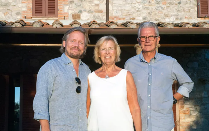 Foto: Pär, Ewa och Bengt Thomaeus förverkligade drömmen om en vingård i Toscana. Foto: Annik Rådlund