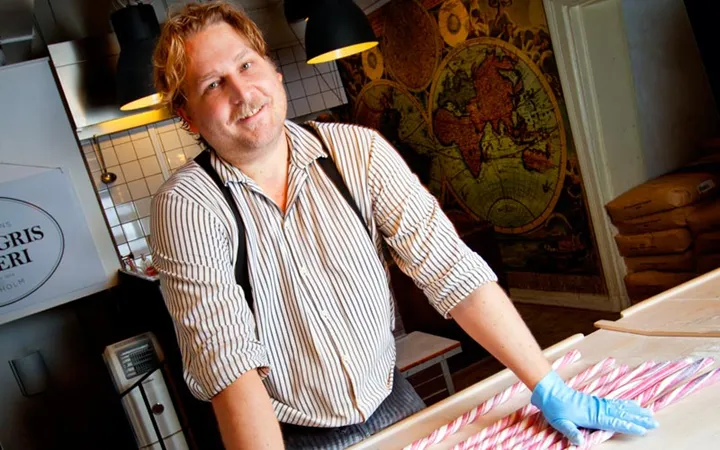 Foto: I jultider är det högsäsong för Damo Sundvalls polkagrisar i Gamla stan i Stockholm. Här tillverkas och säljs de i butiken och via webbshopen. Foto Björn Leijon.