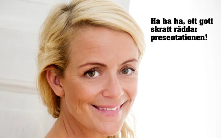 – Av skratten blir du bekräftad. Blir du bekräftad blir du lugnare. Blir du lugnare blir du bättre och kan fokusera på det du vill säga. Får du en publik att skratta när du håller en presentation kommer de dessutom automatiskt att gilla dig, minnas dig och dessutom lära sig fortare, skriver hon.