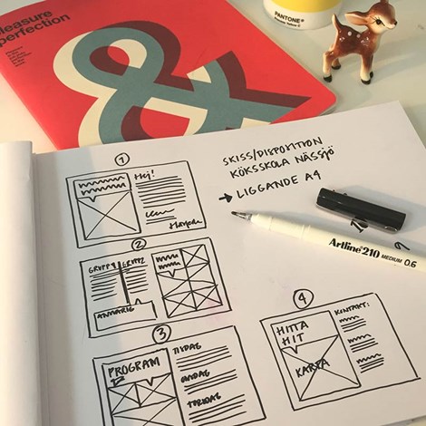 Digitalt i all ära, men oftast börjar jag med att skissa upp dispositionen för hand innan jag jobbar vidare i datorn.[/caption]
