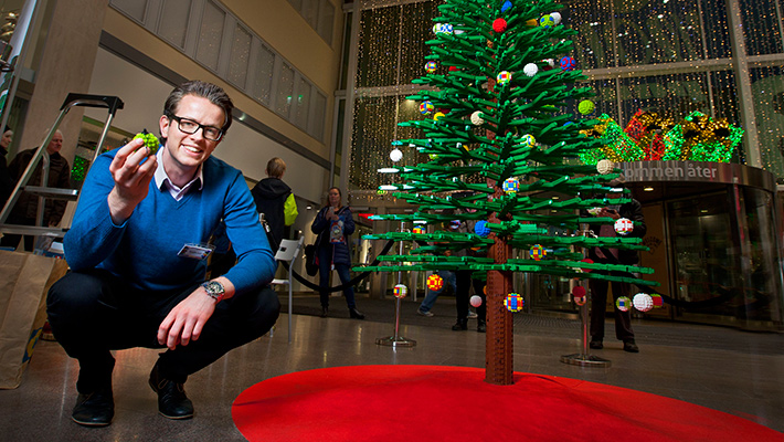 Gabriel Bremlers företag bygger modeller i Lego på uppdrag av sina kunder, som en tre meter hög julgran i Skärholmens centrum. Ett unikt inslag i julskyltningen som blev en riktig snackis.