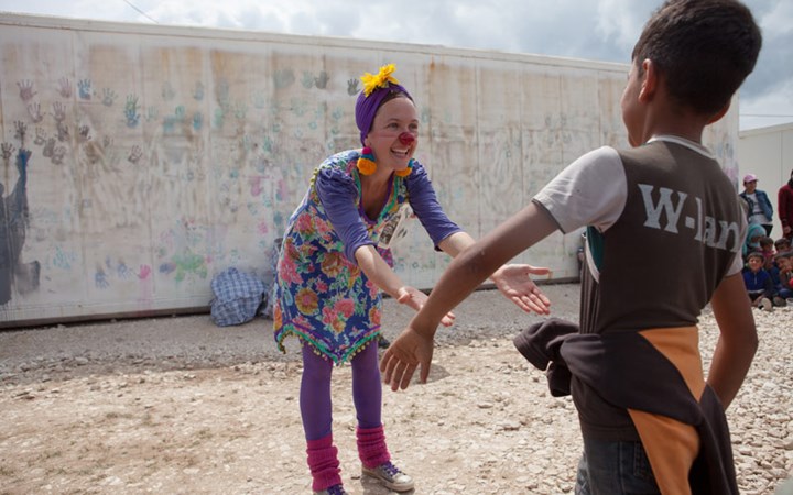 Foto: Aldrig förr har så många människor varit på flykt. Clowner utan gränser stöttar barn på flykt. FOTO EDWARD MORGAN