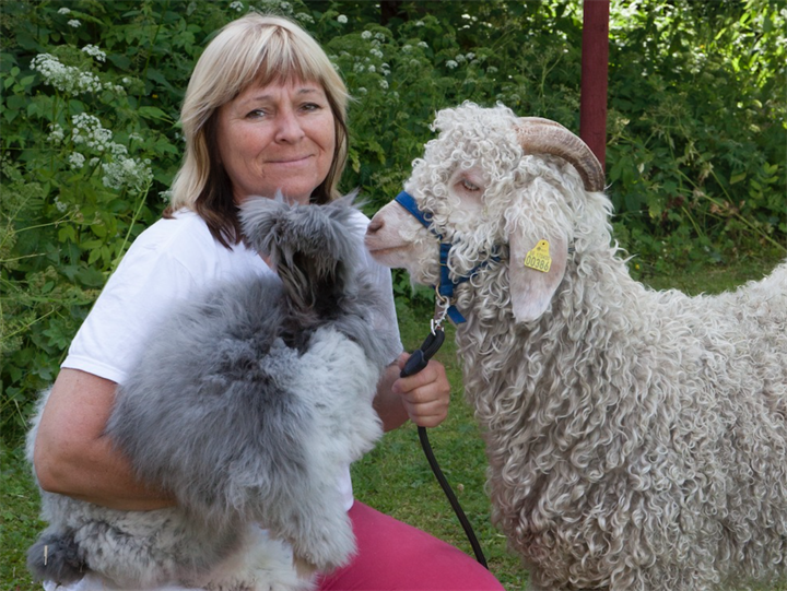 Foto: Gunilla Larsholt med två av sina ulliga vänner. Foto: Kristina Bäckström