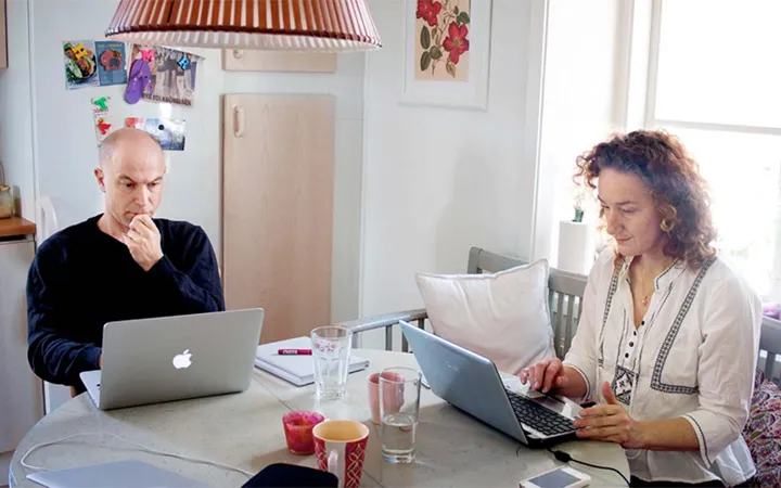 Foto: Coachen Fredrik Hallberg och trädgårdsmästaren Monika Vlasak har kontor i köket.