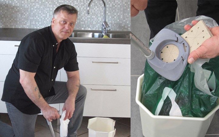 Malmöbon Göran Persson tröttnade på att behöva dra på sig gummistövlarna och hoppa i sin soptunna. Så han kom på smarta uppfinningen ”Comprez, som nu fått Hörby kommuns miljöpris.