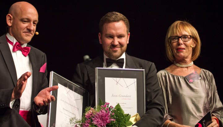 Förra året vann Tobias Lindfors Företagarnas pris "Årets företagare" och grattades av Lena Philipsson på scen.