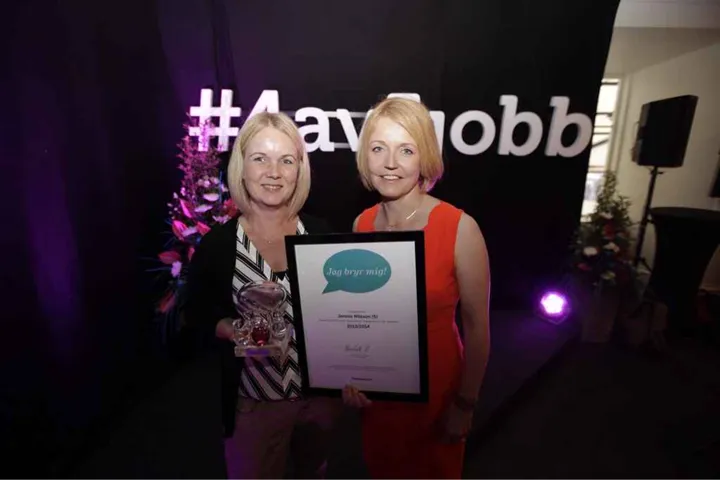 – Det viktigaste är att synliggöra småföretagarna, sa Jenni Nilsson när hon fick diplom av Företagarnas vd Elisabeth Thand Ringqvist på ett seminarium under söndagen på Almedalsveckan i Visby.