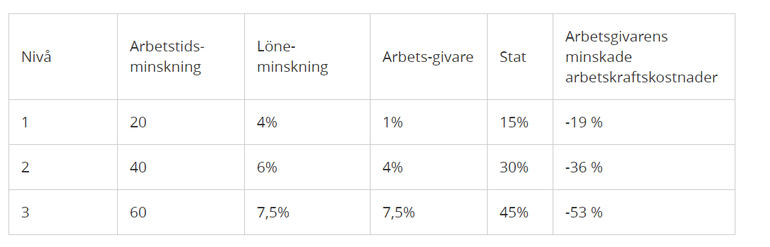 Det statliga stödet för korttidsarbete (tidigare korttidspermittering) är tänkt att motsvara 75 procent av företagets kostnader för arbetstidsminskningen.