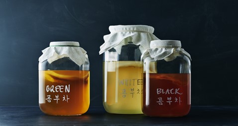 Kimchi kan man göra själv hemma. Samma sak gäller kombucha, som är en fermenterad dryck gjord på te och en kombuchakultur.