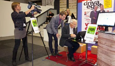 Driva Eget hade egen monter där medarbaterna på bilden hjäpte läsarna medan Annika Widebeck producerade inslag för Driva Eget Play. .