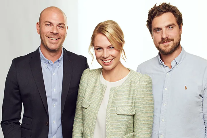 Foto: Tre av Krys fyra grundare: Josefine Landgård, Fredrik Jung-Abbou och Joachim Hedenius.