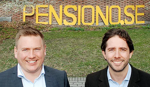 - Framförallt för småföretagare eller anställda i mindre bolag. Många kan spara över 100 000 kronor, säger Mattias Fellenius (till höger), vd för Pensiono.se, jämförelsesajten som han grundat tillsammans med Nicklas Hellberg (till vänster).