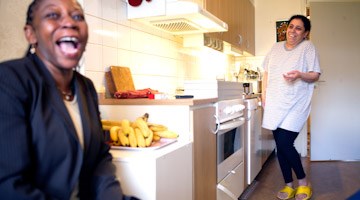 Kholoud Yamani driver i Stockholmsförorten Alby ett nystartade företag som är en kombination av ett bageri och en städfirma . På köksbordet kavlar hon ut degen till sina dadelkakor som sedan bakas och paketeras för att säljas till någon av de butiker som hon har avtal med. I ett hörn längst in i köket står ett skrivbord med en dator och skrivare.