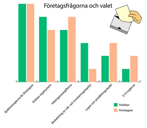 Foto: Företagare och politiker tycker olika. Det visar ny valundersökning. Illustration: Mostphotos