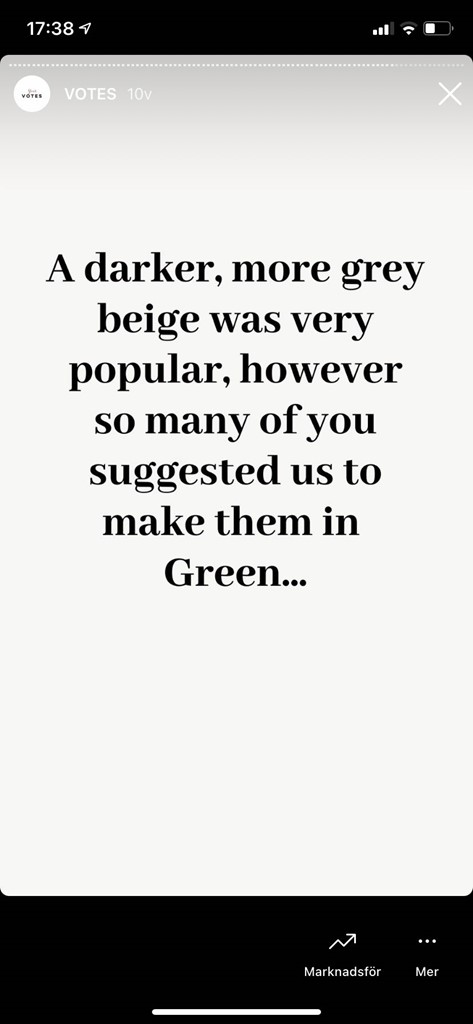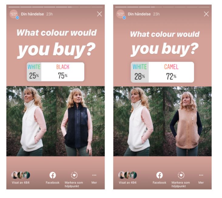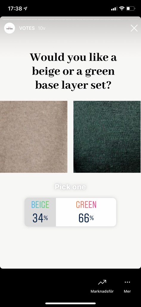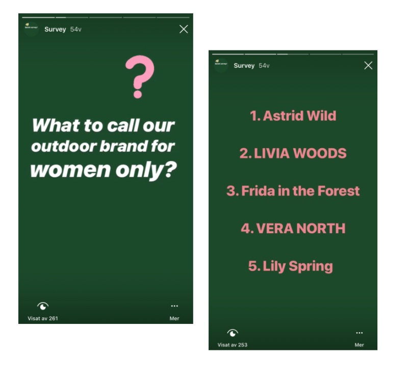 Vi använder Instagrams omröstningsverktyg i snitt en gång i veckan för att engagera vårt community i produktutvecklingen. Jag kan inte nog hylla detta sätt att jobba på, dels minskar det risken för att vi missbedömer en ny produkt, dels är det fantastiskt att hålla vårt community engagerat och vi kan prata om vår nästa produkt redan innan den finns på marknaden.