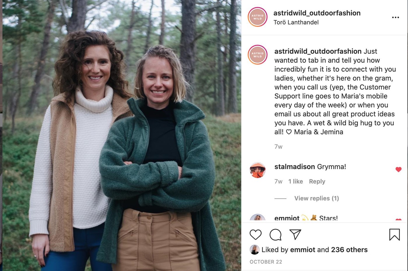 Svenska outdorrmärket Astrid Wild använde Instagram för att starta och snabbt växla upp företaget. Här delar grundarna Maria Paulsson Rönnbäck och Jemina Pomoell sina bästa tips hur hur du kan göra likadant.
