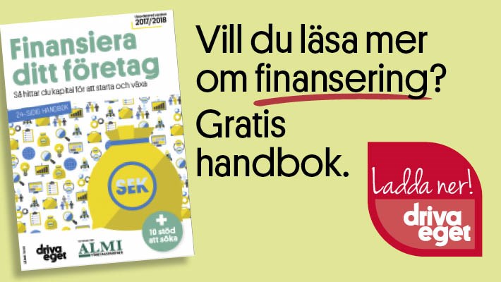 Här kan du ladda ner vår finansieringshandbok i pdf-format: Finansieringshandboken 2017Här hittar du fler artiklar om finansiering.Läs också:4 nya sätt att fixa finansieringFörhandla rätt med riskkapitalisternaSå får du banklånFinansiera ditt företag - här finns pengarna