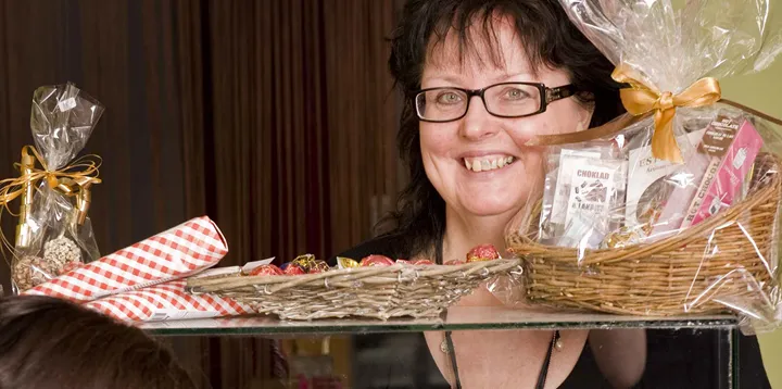 För att öka försäljningen ser hon därför till att ha snygga presentförpackningar med choklad och lakrits redo.