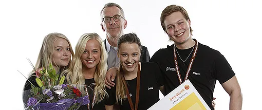 Från UF till AB-vinnaren Victor Lingbäck. Tävlingsvärd: Crenova.Vinnare av bästa årsredovisning blev SWEknob UF. Tävlingsvärd PWC och prisutdelare Ann-Christeine Hägglund.Vinnare av bästa affärsplan: Aroma UF. Tävlingsvärd Investor och prisutdelare Lennart Johansson.Vinnare av bästa logotyp: Capu UF. Tävlingsvärd Kreab Gavin Andersson och prisutdelare Liselotte Bergkvist.Vinnare av bästa webb: Utan mamma UF. Tävlingsvärd Industrifonden och pristutdelare Malin Carlström.Erik Skog, H.K.H Prins Daniel, Anna Skiödenbrandt Berg och Patric Sjöberg.