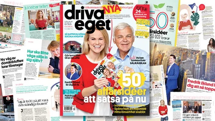 Driva Eget, som startades av ekonomiexperten Anders Andersson, har i mer än sju år varit en av Sveriges ledande småföretagartidningar som slåss för småföretagare och hjälper dem att driva mer lönsamma företag. Nu uppdaterar vi Driva Egets utseende rejält med en helt ny form.