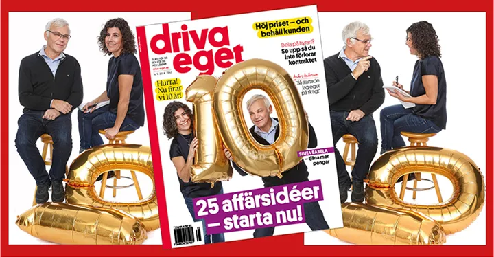 I dagarna kommer årets första nummer av tidningen Driva Eget hem till prenumeranter och ut i tidningsbutiker runt om i landet. Vi kunde förstås inte låta bli, utan gjorde ett speciellt jubileumsomslag för att fira tidningens första tio år.