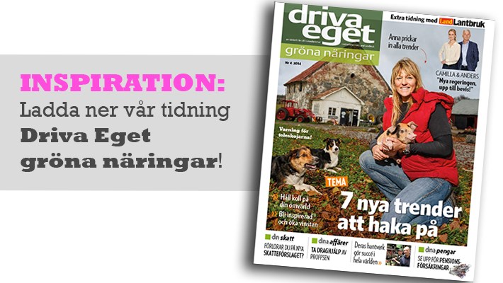 Tidningen Driva Eget Gröna näringar har kommit ut med fyra nummer under 2014 och är en oberoende tidning som produceras i samarbete med Land Lantbruk.